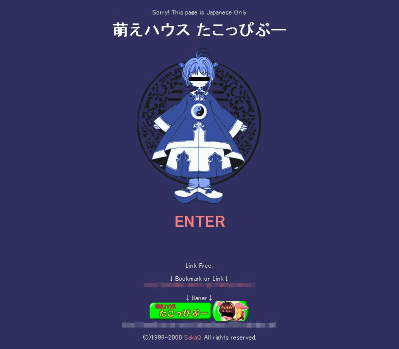 | 萌 え ハ ウ ス た こ っ ぴ ぶ ー | [1999/02/28] (~2001/04/30) <別館『萌えハウス たこっぴぶー』スタート> ● ●・WinampのSkinを作って公開してました。 [1999/**/**] ![]() ・この頃の『Q.BERAY』。 ・もう既にコンテンツが多くて、見てらんない(ノД`) | ||